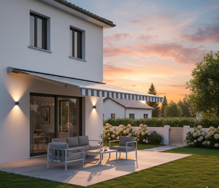 L'aménagement extérieur d'un pavillon avec un store banne, une pergola et un portail offre de multiples avantages.